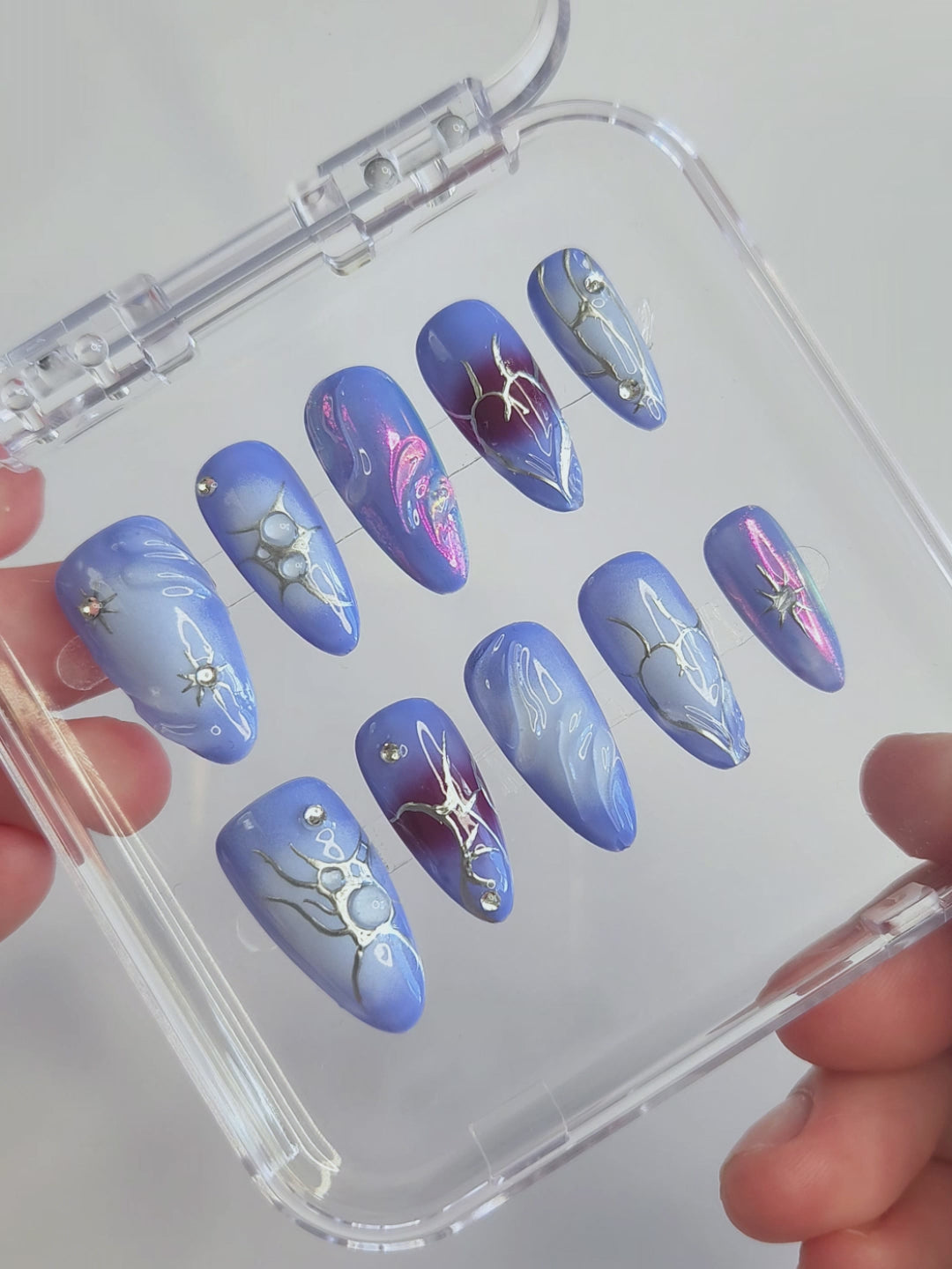 Bruger du de medfølgende press on tape og følger vores guide, kan dine negle holde i ca. 5–7 dage. Hvert sæt kommer med tabs nok til op til 6 påføringer.